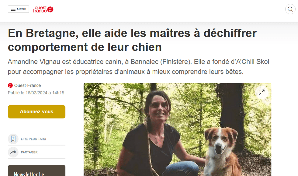 Après de nombreuses années d’activité entant qu’assistante dentaire, j’ai décidé de me consacrer à la cause animale, plus particulièrement à son bien-être et leur expérience dans notre société. C’est ainsi que « A’chill Skol » est né.